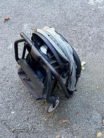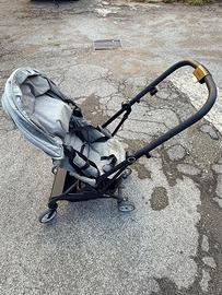 Passeggino grigio in buone condizioni facile da chiudere con sedile rigirabile e con spazio porta oggetti sotto al sedile. Posizione completamente reclinabile con cinture. Piccolo difetto sull’impugnatura, leggera apertura del tessuto visibile in foto. Con scatola originale. Compatto e facile da chiudere.