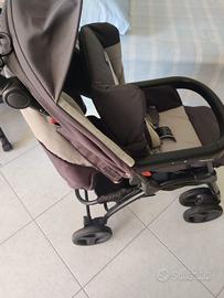 Pratico, velocissimo da chiudere e da aprire, compatto e confortevole: è Espresso di Inglesina. Omologato per trasportare il bimbo dalla nascita. Chiusura ed apertura semplice ed agevole. Il passeggino chiuso rimane in piedi da solo. Freno attivo monocomando, che una volta inserito si porta in posizione automaticamente, garantendo una maggiore sicurezza nell’uso. Ruote anteriori ammortizzate e piroettanti, dotate di meccanismo di blocco-sblocco che, una volta attivato, si innesta automaticamente in posizione. Gruppo ruote anteriore facilmente removibile per un’agevole pulizia e manutenzione. Manico unito, soft-touch regolabile in altezza e ripiegabile in chiusura; consente la guida con una sola mano. Schienale strutturato, reclinabile in 3 posizioni a comando centralizzato. Seduta rinforzata e confortevole. Doppia posizione di regolazione in altezza delle cinture dorsali, per accompagnare la crescita del bambino. Cinture di sicurezza regolabili a 5 punti Spallacci imbottiti. Pedana anteriore regolabile in 2 posizioni. Imbottitura sfoderabile e lavabile a mano a 30°C. Braccioli con inserti “soft touch”. Corrimano di serie con possibilità di rotazione per un agevole accomodamento del bambino. Capotta sfoderabile e lavabile a mano a 30°C. Tasca porta oggetti sulla capotta. Finestra trasparente sulla capotta. Pratiche zips posteriori sulla capotta favoriscono l’aereazione. Capotta inclinabile in avanti per funzione parasole. Capiente cestino in rete con fondo rinforzato, omologato fino a 3 kg di peso. Caldo e soffice copri gambe di serie. Informazioni tecniche: Tipo di chiusura: a libro Dimensioni aperto: 80/105 x 86 x 47,5 cm (altezza x profondità x larghezza) Dimensioni chiuso: 75 x 34 x 47,5 cm (altezza x profondità x larghezza) Peso con cesto e capotta: kg 8,6 Materiali struttura: alluminio Materiale rivestimento tessile : 100% poliestere