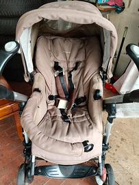 Bebèconfort in buone condizioni, poggiapiedi, manico removibile per facilitare la salita e l'aggancio del bambino e cappottina con visiera, il passeggino si può montare con fronte strada o fronte mamma più cerata per la pioggia