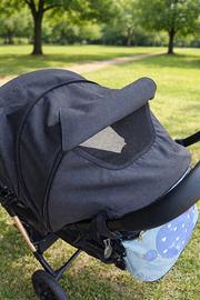Bellissimo passeggino leggero, si chiude da solo con un meccanismo, reclinabile con cappotta molto ampia . Ruote posteriori grandi percio’ molto comodo per terreni sterrati. Telaio rose’. Maniglione in pelle.