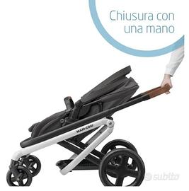 Praticità estrema: chiusura con una sola mano, maniglione regolabile in altezza, ruote smoothride a lunga durata con sospensioni, freno centralizzato, blocco automatico del telaio chiuso