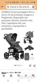 vendo Passeggino Lionelo annet usato 1 anno ottimo acquistato su amazzon a 155 euro la spedizione devo gestirla io x il solo motivo che supera le dimensioni della scatola deve essere minimo 80x70 il passeggino misura 76x64 .