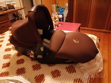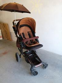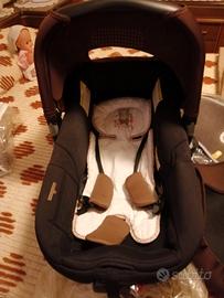 usato ma in ottime condizioni, completo di plastiche per la pioggia, zanzariera, e due piastre isofix da mettere in auto