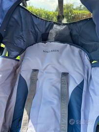 Passeggino McLaren richiudibile con sacco invernale (nell’ultima foto) e maniglia per portarlo a spalla. Il prezzo del passeggino da nuovo e’ di 289 euro. E’ stato appena sfoderato e lavato, pronto all’uso. Il passeggino più leggero in commercio.