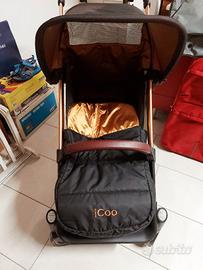 Passeggino sportivo Icoo con un ottimo meccanismo di chiusura ad una sola mano, in pochi secondi sblocco e ripiegamento, ottimi per i viaggi in autobus Manico regolabile in altezza Tessuti di alta classe uniti a finiture di vero cuoio.