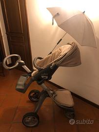 Passeggino+navetta Stokke Xplory beige+ accessori (ombrellino, copertura antipioggia, copertura a sacco invernale imbottita+copertina stessa fantasia+borsa)+ scatole originali