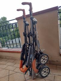 Passeggino con navetta del set Trio della Chicco. La struttura è parecchio usata ma funzionante. Sganciabile e richiudibile come da foto. La navetta è in migliore stato; idonea all'allaccio con cinture di sicurezza e trasporto in auto, completa di materassino e fascia cintura di sicurezza per il bebè. Vendesi anche separatamente struttura € 20,00 e navetta € 35,00 (può essere utile come seconda culla).