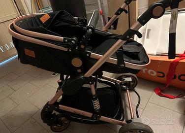 Passeggino 3 in 1 con due modi reversibili spingere, Trio con design pieghevole in un click, trio passeggino neonato 30kg.