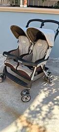 Passeggino gemellare Aria Shopper Twin agile, maneggevole e pratico. Doppia ruota e si chiude a libro. È il più leggero della gamma Peg. Perego Completo di cappottina e portaborse inferiore.