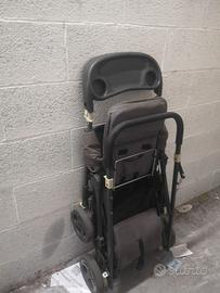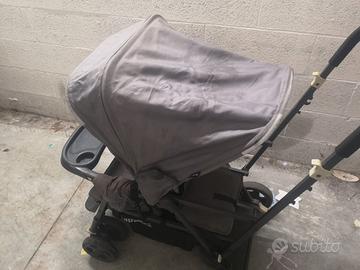 Passeggino con 2 sedili per portare 2 bambini, il più piccolo avanti il più grande dietro.