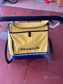 Vendo passeggino per bambini adatto a due bambini o anche un bambino grande … spazio porta oggetti ampio … ruote estraibili con facilità ..possibilità di aggancio alla bicicletta Molto facile da usare prezzo 200 euro