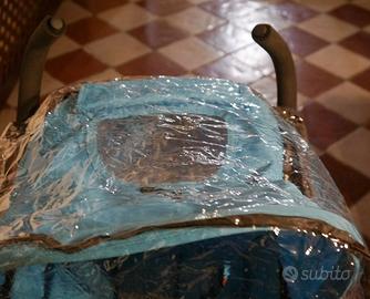 passeggino pieghevole supercompatto (vedere foto) con 4 ruote doppie (otto ruote) in gomma morbida, aperto diventa un passeggino normale, dotato di cinture di sicurezza, rete per trasporto giocattoli/biberon e capotina apribile con finestra trasparente. ACCESSORI inclusi nel prezzo: 1) predellino posteriore con ruote grandi per secondo bambino oppure per far stare in piedi il piccolo (il predellino serve per bambini direi dai 3 anni in su). 2) capotina completa antipioggia trasparente (la capotina aggiuntiva trasparente copre fino ai piedi, anche se non si vede in foto), 3) copertina termica che presumo si applichi come nella fotografia. Si apre e si chiude in un attimo. Molto robusto. NON SPEDISCO salvo accordi diretti - ritiro a Bologna in zona Roveri - E' adatto a bambini in età da passeggino. Ho scritto per tutte le età perchè SUBITO non offre la scelta giusta che sarebbe -a mio parere- da 1,5 a 6 anni
