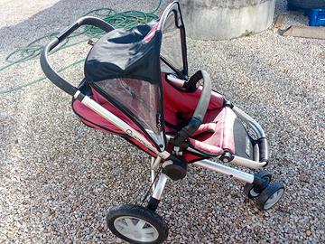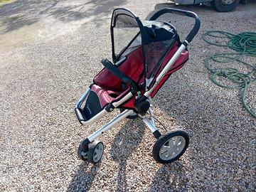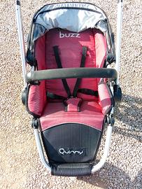 Passeggino Quinny di colore rosso e nero, con telaio in alluminio.