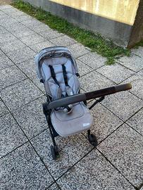 Passeggino ultraleggero (circa 8 kg) con seduta reversibile (fronte mamma/fronte mondo). Chiusura compatta e con una sola mano. Reclinabile a 180 gradi (utilizzabile dalla nascita). Schienale regolabile in altezza. Sospensione su 4 ruote. Freni che si possono usare anche a piedi nudi. Poggiapiedi regolabile. Spallacci. Cintura di sicurezza a 5 punti. Schiuma sul maniglione. Finestra di ventilazione. Cappottina parasole extra grande UPF50. Cinghia per trasporto da chiuso. Ha qualche graffio sul telaio ma l’alluminio è perfettamente integro.