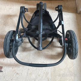 La base con le ruote pieghevole, apertura facile e comoda. Il passeggino si attacca/stacca un un click.