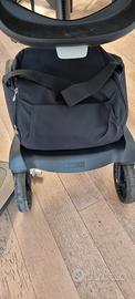 Passeggino Stokke Black Xplory include: ombrellino, borsa porta oggetti, cuscino per sedile, porta bibite, cerata per pioggia, pedanina per trasporto fratellino.