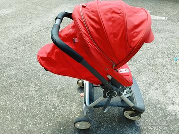 Passeggino stokke linea scoot multiverso ( si può girare verso la mamma e verso la strada ) colore rosso reclinabile .