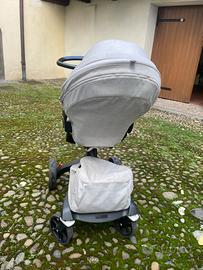 • Borsa removibile con manico per il trasporto che funge da cestello portaoggetti sul passeggino