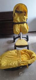 Stokke Trio Xplory: Navetta,Ovetto e Passeggino con accessori. Si può cambiare il colore tra rosso e giallo in quanto munito di doppio rivestimento. Il Trio è datato ma in discrete condizioni Ritiro in loco a Tortona no spedizione