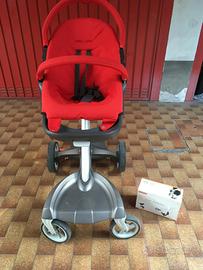 Vendo per inutilizzo passeggino duo Stokke Xplory colore rosso, compreso di navicella, pedana porta bimbo e accessori come in foto.