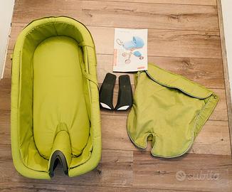 Passeggino completo che copre dagli 0 ai 3 anni. Navicella e seduta con poggia poedi regolabile. Coperta per navicella e sacco inverno rivestito in morbido pile.