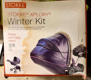 Stokke Winter Kit: Accessorio fondamentale per l'inverno che include cappotta isolante con bordo in vera pelle di pecora, copertura tessile posteriore e manicotto scaldamani per il genitore (nella sua scatola originale). Sacco invernale dove proteggere il proprio bambino con temperature rigide