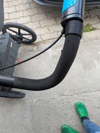 Facile da manovrare, grazie alla ruota anteriore piroettante che si blocca per fare jogging, e alle ruote posteriori da 16”.