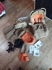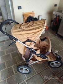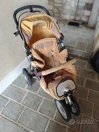 Passeggino 3 ruote adatto anche su sterrato. Comodo e maneggevole con leva freno ammortizzato. Le ruote si gonfiano con una pompa. Usato ma ben conservato. Completo di ovetto, borsa, telo pioggia, copri ruote e relativi coordinati.