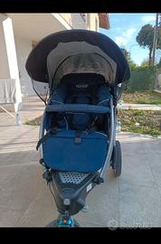 Trekko di Graco è un passeggino sportivo e pratico, ideale per trekking ma anche per l'uso quotidiano, adatto dalla nascita fino ai 3 anni circa (0-15 kg). Grazie allo schienale reclinabile in 4 posizioni (100 a 170°) e al poggia gambe regolabile, il bambino può assumere una comoda posizione da seduto o da sdraiato. Per la massima maneggevolezza e praticità, Trekko si chiude in un istante con un solo rapido movimento ed è dotato di un maniglione unito e regolabile in altezza, per adattarsi all'impugnatura di mamma e papà. Il passeggino è inoltre dotato di imbracatura a 5 punti e bracciolo frontale rimovibile, per garantire sempre la massima sicurezza del bambino. Completo di ampio cestello portaoggetti, borse aggiuntive, copertura extra parasole e copri mani invernale. La capottina realizzata in tessuto a prova di raggi UV, può ruotare per essere utilizzata anche in posizione carrozzina portaoggetti. Peso 5,8 kg. Le ruote sono tutte rimovibili a sgancio e aggancio rapidi. LE LUCI SONO STATE APPLICATE DA ME E NON SONO COMPRESE NELLA VENDITA, VERRANNO RIMOSSE.