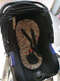 Passeggino Trio Be Cool November slide by Jané in ottime condizioni! Maniglione unito regolabile e rivestito con fodera removibile in ecopelle, chiusura a libro compatta con blocco, ovetto e navicella e passeggino si agganciano al telaio moderno e in alluminio, senza adattatori, dotati tutti di doppia cappottina, passeggino seduta fronte strada / fronte mamma, regolabile in 3 posizioni, completo di borsa coordinata, parapioggia, ampia cesta porta oggetti e sacco passeggino coordinato! ruote removibili, freno azionabile con piede.