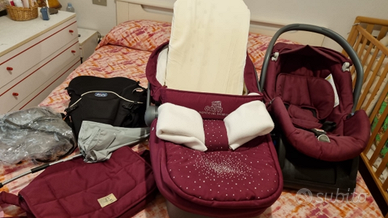 Vendo passeggino Trio CAM Dinamico, modello fiocco con brillantini. Completo di tutto. Unico nel suo genere per il colore. Struttura un po' toccata in alcuni punti. Ruote posteriori gonfiabili. Prezzo leggermente trattabile.
