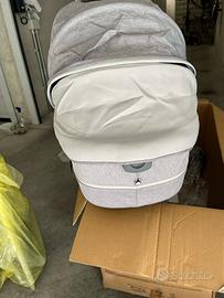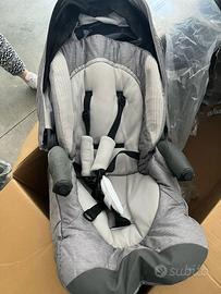 Trio della Chicco usato, completo di ovetto con attacco isofix, navicella e seduta passeggino + borsa a tracolla. Colore grigio chiaro adatto sia per maschi che femmine. In buone condizioni.