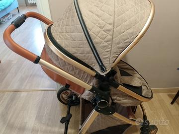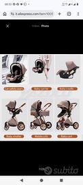 Passeggino trio in ottime condizioni. Tre modalità: ovetto, navicella, passeggino. Molto comodo, leggero, ruote grandi e super ammortizzate. Cerniere per aereazione e dettagli cromati bronzo. Solo ritiro a mano.