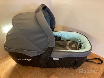 Trio Concorde comprensivo di passeggino, culla e trasportino. Veramente comodo e pratico il passeggino, sicuri e robusti culla e trasportino; ogni singolo elemento è collegabile al telaio con le ruote. Culla e trasportino predisposti per il trasporto in auto con appositi ganci per il passaggio della cintura. Qualità costruttiva tedesca, completamente sfoderabile e lavabile, ruote posteriori smontabili tramite pulsante per ingombrare meno.