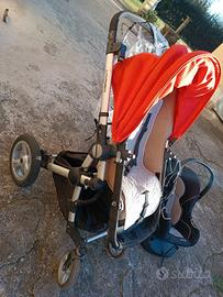 passeggino trio Foppapedretti modello baby ace. 2 colori cappottine per passeggino e navicella: nero e arancione. Copertura gambe per navicella. Cappottine pioggia, materassino aggiuntivo per navicella, copri materasso aerosleep e cuscino anti soffocamento. Aeratore per seduta passeggino. Base isofit per montare l'ovetto in auto.