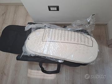 Trio gemellare, composto da telaio con ruote grandi e ammortizzatori, 2 ovetti, attacco isofix per auto e riduzioni, 2 navicelle richiedibili comprese di materassino traspirante, 2 sedute passeggini e tutti i vari optional quali zanzariere e antipioggia.