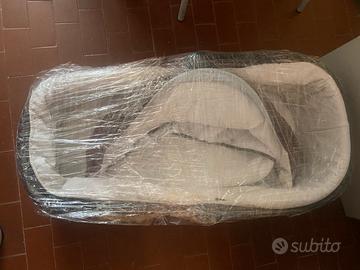 Trio Inglesina zippy colore marrone e celeste con culla e ovetto.