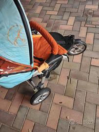 Passeggino a tre ruote con freno a disco, comodo anche per gite all'aria aperta.