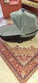 passeggino trio completo usato pochissimo struttura navicella nero lucido con cappotta argento brillantinato. Non comprende nel passeggino la borsa