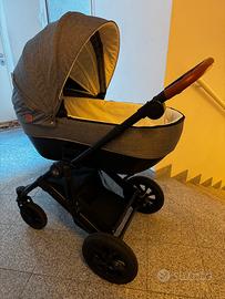 Fin dai primi giorni di vita, una gondola profonda e confortevole accompagna il vostro piccolo, mentre per i più grandi vi aspetta un agile e leggero passeggino. Realizzato con materiali di alta qualità, vi delizierà con il suo aspetto e la sua funzionalità. Sospensioni su tutte le ruote, freno centrale, grandi ruote con pneumatici e costruzione leggera e maneggevole ne fanno un carrello per uso speciale. Il tetto è profondo e fornisce un'eccellente protezione dalle influenze esterne. Dispone inoltre di un ulteriore parasole estensibile. Sono inclusi nella consegna gli adattatori, che permettono di installare nel telaio i seggiolini auto per bambini delle marche più popolari. Il set comprende una pratica e spaziosa borsa. Può essere utilizzata come borsa a tracolla o per essere appesa al telaio dell'auto. Bellissimi e tangibili manici in ecopelle per i genitori e i piccoli viaggiatori.