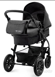 Trio KinderKraft modello Moov, cesta che si trasforma in passeggino in un click + ovetto omologato per l'auto. Compreso di borsa, copri gambe e parapioggia. Colore Grigio con manico in pelle marrone. Acquistato a gennaio 2024, utilizzato poco.