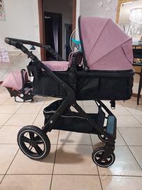 Passeggino trio 3 in 1 di colore rosa e nero senza la borsa tenuto in ottime condizioni.