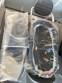 Vendo passeggino Trio Momon mod. Vernuj 0-15kg dotato di: passeggino utilizzabile sia fronte mamma che fronte strada con copertura, navicella con materassino e copertura, ovetto-seggiolino auto con copertura, sacco-piumino per il passeggino colore blu (interno in pelo morbidissimo e caldo, esterno impermeabile), borsa, zanzariere, anti pioggia, 4 copriruote per interno casa, ruote posteriori alte e spesse ammortizzate adatte a qualsiasi terreno. Ottime condizioni.
