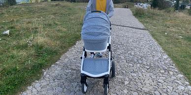 Vendo passeggino trio marca Momon Vernuji edizione limitata con stampa jeans particolare. Gli articoli in vendita sono: