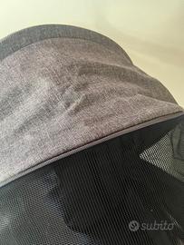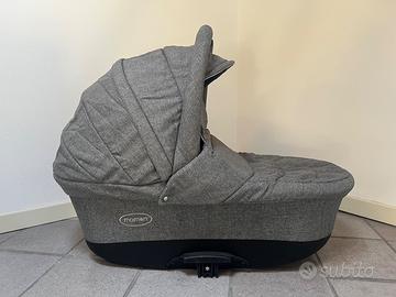 Passeggino Trio Momon Vernuju composto da telaio ripiegabile con contenitore a cerniere, navicella neonato, seggiolino auto (gruppo 0-1 fino a 13kg) e passeggino fino a 15kg. Completo di tutti gli accessori, compreso cappotta con retina anti-zanzare. Includo anche copertura pioggia. Ho altre foto a disposizione.