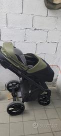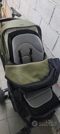 Passeggino con configurazione trio della casa tedesca My Junior. Struttura solida e facilità di conduzione e manovra. Adatto per ogni tipo di terreno; molto versatile anche nelle passeggiate di montagna. Completo di copertura per proteggere le gambe del vostro piccolo.