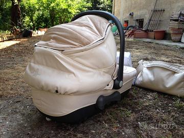 Passeggino Trio neoNato modello reverso sport tris colore beige con borsone ed accessori vari tra cui la capottina trasparente.