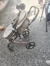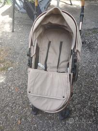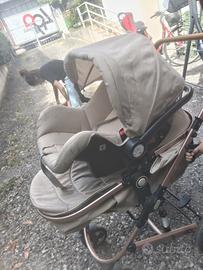 passeggino/carrozzina e ovetto omologato per neonati con 4 ruote grandi utili anche per scendere le scale, Ovetto I-SIZE 40-75 cm, Carrozzina reversibile fronte mamma e strada, Pieghevole, Beige con retina antizanzare inclusa