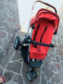Vendesi passeggino trio Quinny composto da ovetto nero, navetta e passeggino con doppia fodera color rosso (una in tessuto tecnico più leggera e una più imbottita).