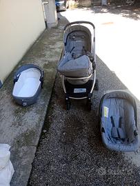Vendo passeggino trio marca Giordani usato ma tenuto molto bene, con borsa originale, composto da culla e ovetto, tutto molto semplice da usare e solido